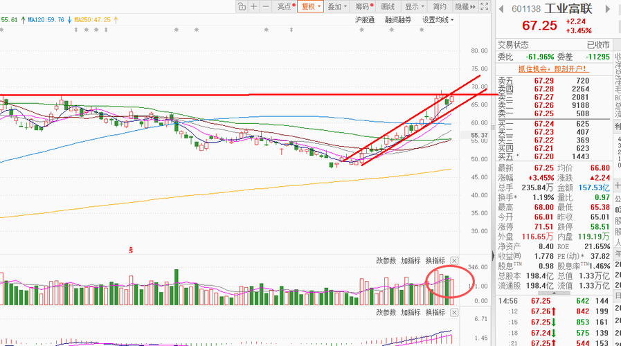 点赞,转发,评论,让我们股市的道路上共同进步。 个股观察 工业富联(601838) 自从上周放量走强,预期的回踩在周五已经兑现,昨天再度在5日线位置企稳反弹,能明显感受到5日线支撑效果很强。但因成交力度不足,上行再度在68位置承压。近期一直被压制,不难看出资金控盘意图明显,意在走高位整理,为下一波趋势行情蓄力。所以今天重点看能否有效突破。 国晟科技(603778) 国晟近期处于磨底阶段,当前缩量整...