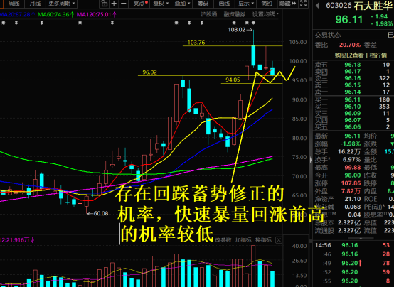 持仓股分析(不构成投资建议,仅供参考) $石大胜华(SH603026)$ 全球锂电溶剂龙头,2026年高资本开支:总投资27.47亿元,全部投向锂电主业(液态六氟、硅基负极、添加剂),产能集中释放、业绩持续兑现。今天仍存震荡整理,小幅止跌修复可能,但反弹力度与持续性存疑。核心观察94-95元支撑与98-99元压力,量能是否有效放大是关键。整体短期偏谨慎震荡,中期趋势仍看板块与资金面变化。 $中国化学(SH601117)$...
