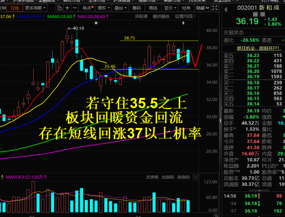 持仓股分析(不构成投资建议,仅供参考) $新和成(SZ002001)$ 全球精细化工龙头2025年:10派8元,分红24.56亿元,3年分红率30–50%,累计分红超139亿元,高股息、现金流充沛、财务安全边际极高。上周五收中阴线、缩量下跌,存在短期获利回吐、洗盘整固需求,但未破坏中期震荡上行结构。周一37元附近存在短期套牢盘抛压,缩量状态下突破难度较大。若维持缩量(15亿以下),存在窄幅震荡、磨...
