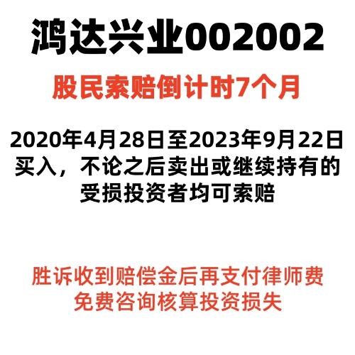 $ST鸿达(SZ002002)$2020年04月28日至2023年09月22日(含)期间有买入鸿达兴业股票,无论在2023年09月22日后卖出或继续持有的受损投资者可联系索赔@索赔倒计时