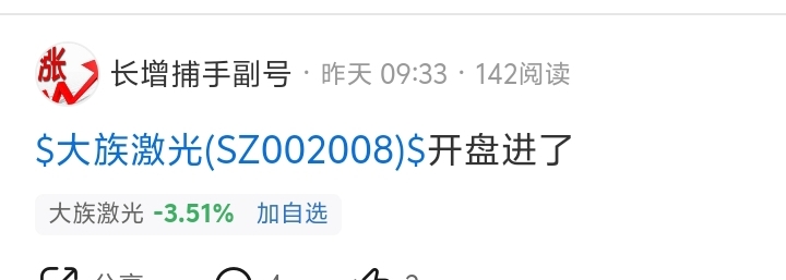$大族激光(SZ002008)$昨天打开涨停板追进去2000股被套了