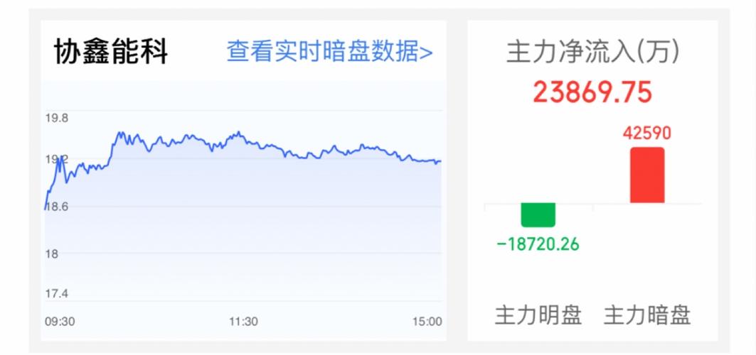仅供参考某花顺 协鑫能科4月20日收盘上涨3.4%,全天成交38.83亿元,主力资金净流入2.39亿元。从暗盘资金数据来看,今日主力净流入中可能包含部分通过拆单等隐蔽手法成交的资金,这通常意味着主力资金的真实介入意愿可能比明盘数据显示的更为积极或复杂。 最新数据显示,协鑫能科当日主力暗盘资金呈流入状态,而主力明盘资金为流出。根据资金流向分析,虽然明盘资金呈现流出,但暗盘资金流入规模更大,带动整体主...
