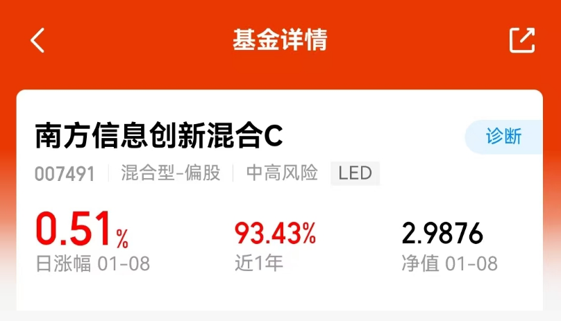 我来说两句,行情来的时候,你得在车上。像$南方信息创新混合C$(007491),就是一辆最近开得挺快的车,近一周速度是18%,近半年跑了65%多,近一年跑了93%以上。我今天买票上车了。这车主要开往半导体这个方向。这个目的地现在前景挺明朗,有自己发展的道理,而且行业大环境也在转暖,明年可能是个丰收年。现在买票,我觉得还算是在旅程的前段,车上人是多了,但可能还没满员。#暖阳创作计划#