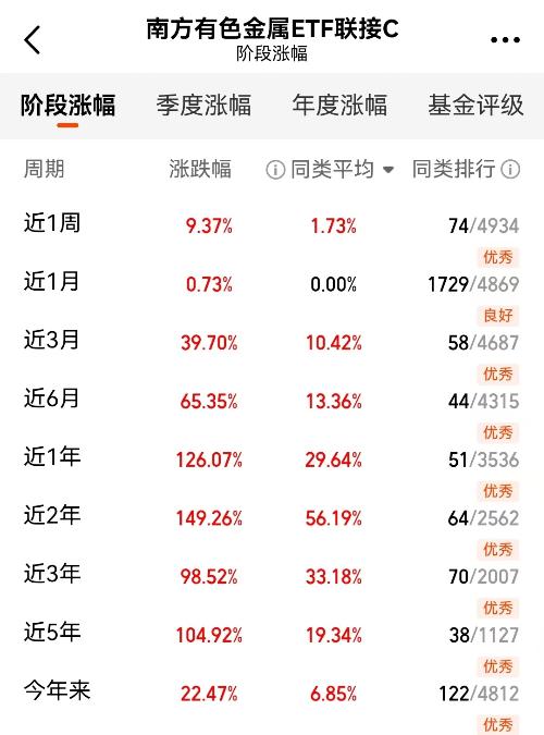 最后再说说我的操作,今天买了点$南方中证申万有色金属ETF发起联接C$(004433)。逻辑其实不复杂,就是避险加复苏的双重考虑。有色金属板块去年涨了92%,已经走出了很强的趋势。现在市场一方面担心外部风险,另一方面也看到经济在慢慢好转,这种有点矛盾的环境下,兼具金融属性和工业属性的有色金属反而比较受益。这基金近六个月涨了51%,表现稳健。总的来看,现在可能只是大周期中的一段,后续我依然看好。#下...
