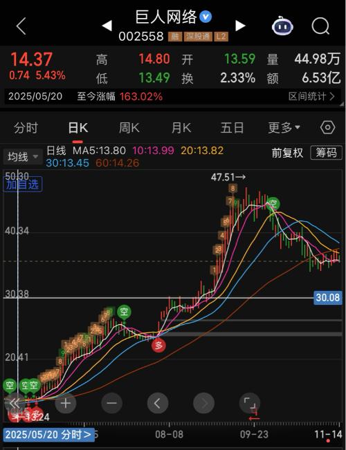 2025年5月20日,自选关注时不时对走势监控跟踪,主力已决对控盘,一直到9月30日主力资金开始出货,落袋为安,最高47元。近期11月初明显看到主力资金流入,股价企稳。是下跌趋势的拉升还是打算开启新一轮行情?