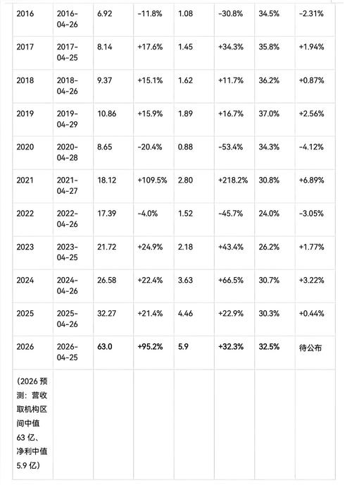 思源电气2009-2026 一季报完整对照(含2026预测+次日涨幅)