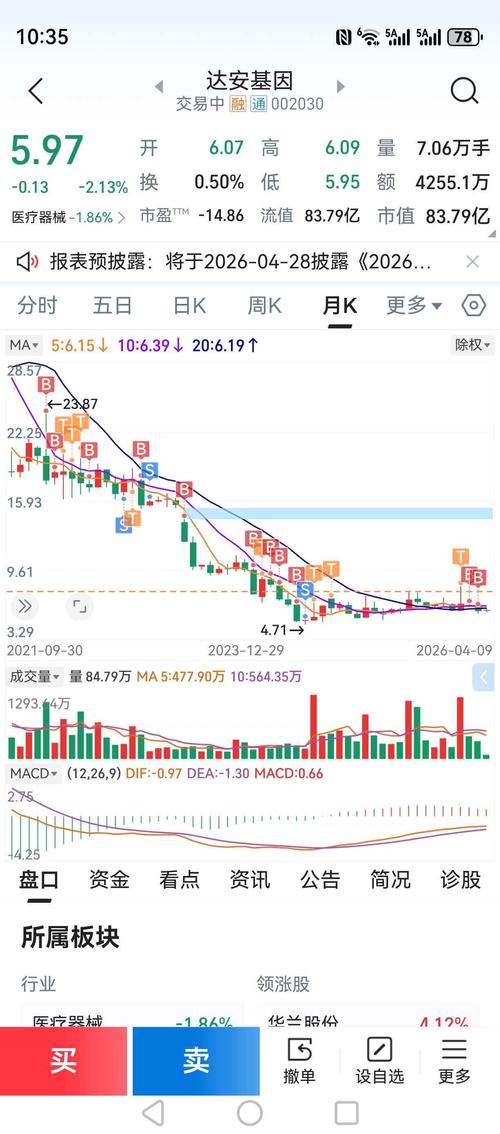 $达安基因(SZ002030)$5.97五倍增仓t仓加倍