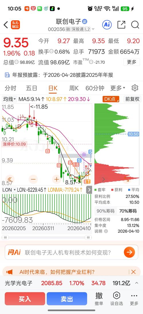 $联创电子(SZ002036)$等你涨到9.50,我再来一万股