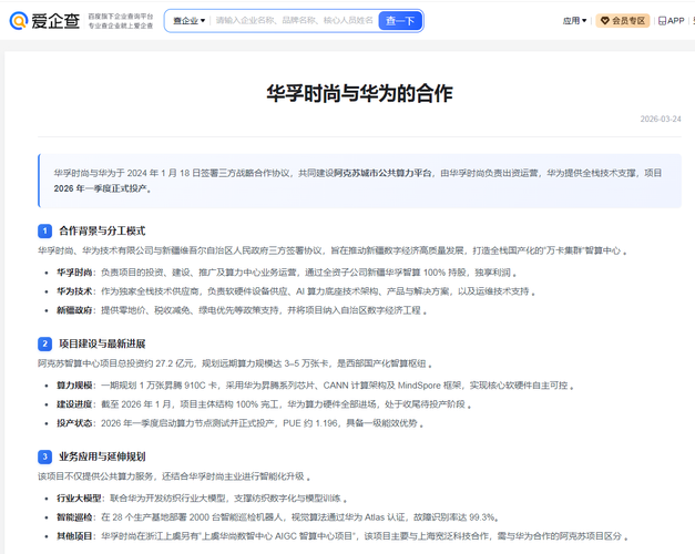 $华孚时尚(SZ002042)$ 华孚时尚与华为于2024年1月18日签署三方战略合作协议,共同建设阿克苏城市公共算力平台,由华孚时尚负责出资运营,华为提供全栈技术支撑,项目2026年一季度正式投产。 一.合作背景与分工模式 华孚时尚、华为技术有限公司与新疆维吾尔自治区人民政府三方签署协议,旨在推动新疆数字经济高质量发展,打造全栈国产化的“万卡集群”智算中心。 华孚时尚:负责项目的投资、建设、推广...