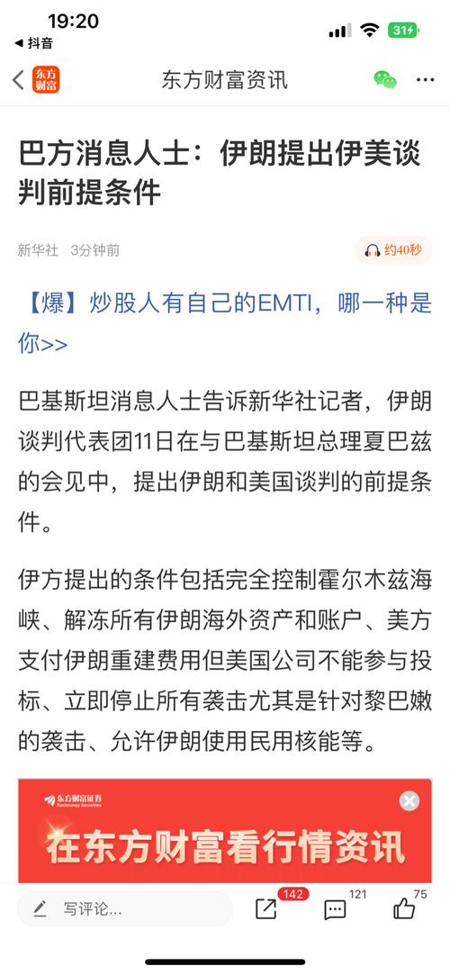 来谈,级别还都很高,所以双方都是有不想打的意愿的。那些说谈判是川普的缓兵之计的,都有点扯。伊朗现在才是最需要缓兵回血的,美国完全可以一边压制一边增兵。但是这么大的事,也不是一次就能谈成的。这初次接触是探底。个人觉得,伊朗的底是保留原班政权和撤销所有制裁。川普的底是什么就不好说了,因为这次开战到现在美国都没明确的目标。如果说是废掉核武的话基本不用谈。如果伊朗自废核武,就是下一个乌克兰。