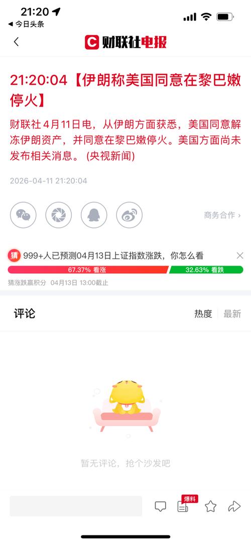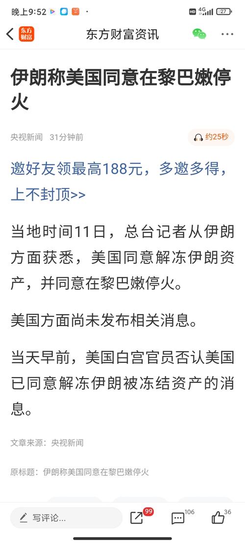 $中工国际(SZ00205121:20:04【伊朗称美国同意在黎巴嫩停火】财联社4月11日电,从伊朗方面获悉,美国同意解冻伊朗资产,并同意在黎巴嫩停火。美国方面尚未发布相关消息。(央视新闻)(来自财联社APP)$
