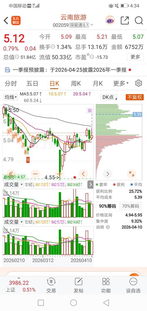 $云南旅游(SZ002059)$5.20压力位突破就牛了,可惜,过不去