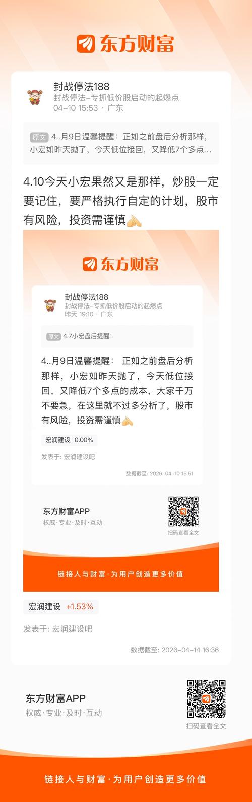 4.14小宏盘后之唠叨:昨天小宏走出一颗阴十字星,今天又小幅高开,开盘先向下砸,然后震荡横盘,尾盘又稍微回拉,还是之前复盘分析那样,不过想过过手瘾的股友(在之前复盘说到的那个支撑位之前),明天如小宏有低吸的机会,可以建个底仓玩一下,之后就盯紧盘面做T,这样应该可以吃到点肉,股市有风险,投资需谨慎