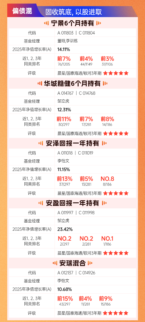 景顺长城混合资产绩优产品合集:一级债&二级债&偏债混合
