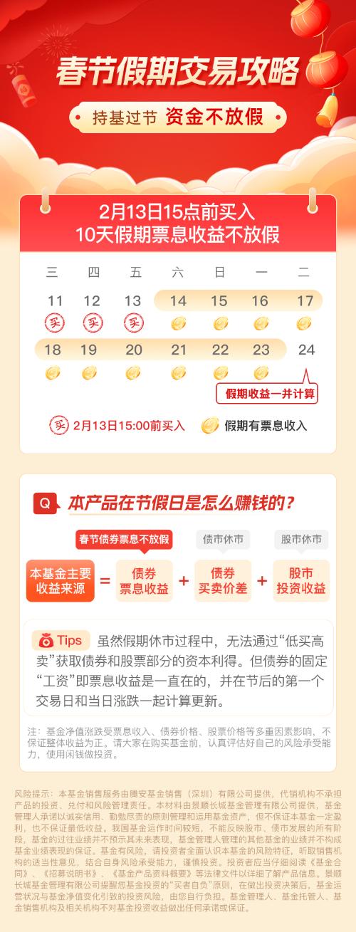 【春节假期交易攻略】2月13日15点前买入,10天假期票息收益不放假!$景顺长城稳健增益债券A(OTCFUND|016869)$、$景顺长城稳健增益债券C(OTCFUND|016870)$、$景顺长城景颐丰利债券A(OTCFUND|003504)$、$景顺长城景颐丰利债券C(OTCFUND|003505)$、$景顺长城景颐双利债券A(OTCFUND|000385)$、$景顺长城景颐双利债券C(OTCFUND|000386)$...