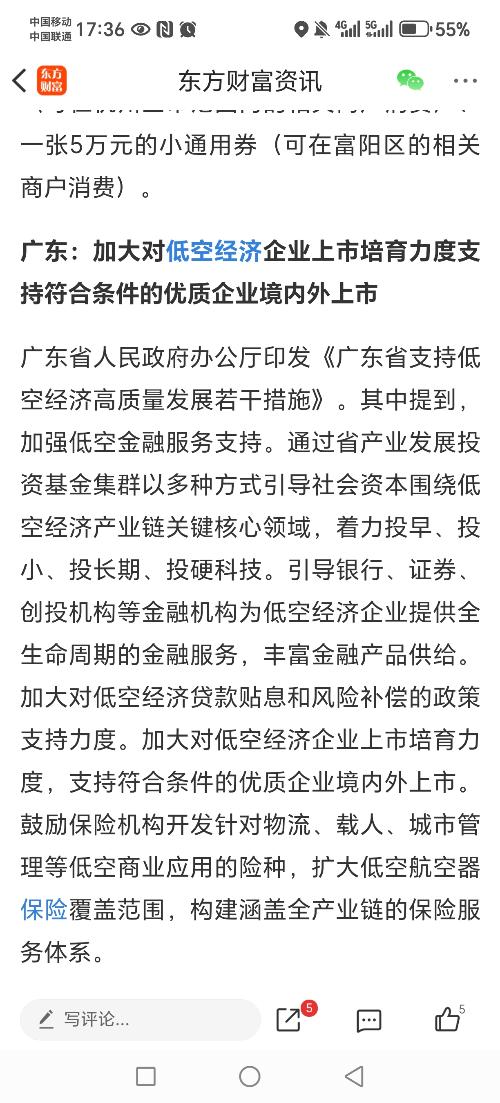 $景兴纸业(SZ002067)$ 御风未来飞行科技(广东)有限公司会受益于该政策。 御风未来是一家专注于电动垂直起降飞行器(eVTOL)研发、制造、销售、运营的企业。根据《广东省支持低空经济高质量发展若干措施》中“加快关键核心技术攻关”的相关内容,聚焦新构型航空器、关键零部件、基础软件、低空飞行保障等关键领域,御风未来的eVTOL研发属于新构型航空器领域,其在该领域有一定的技术积累和实践经验,20...