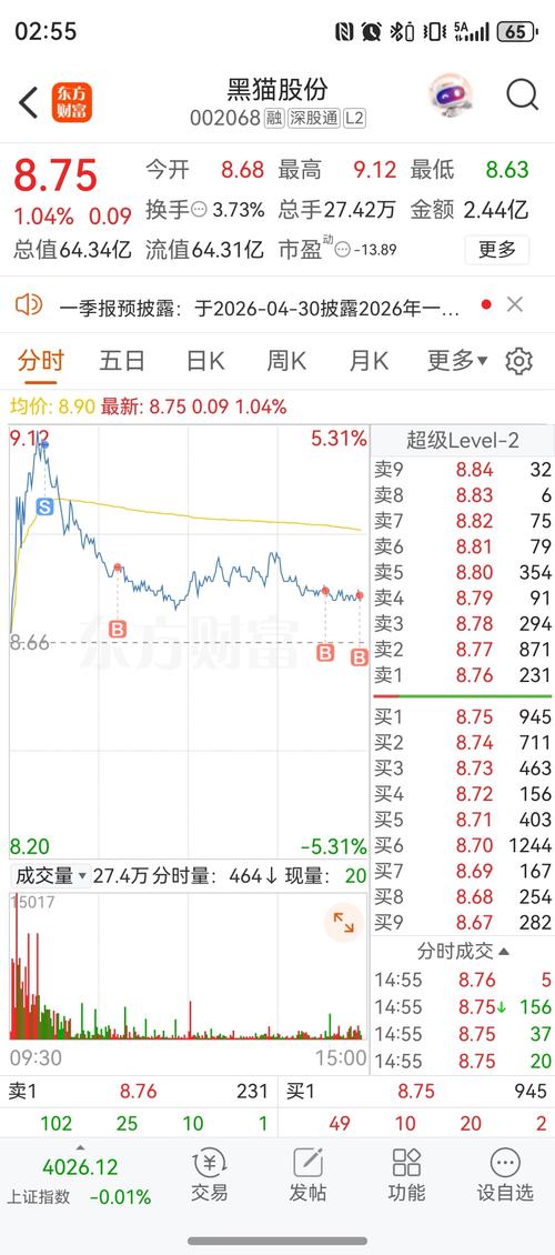 $黑猫股份(SZ002068)$看看我的长信科技,在看看你,嘛耶