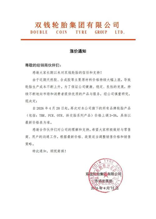 $黑猫股份(SZ002068)$轮胎厂既3月15日涨价后,昨天又发了涨价公告
