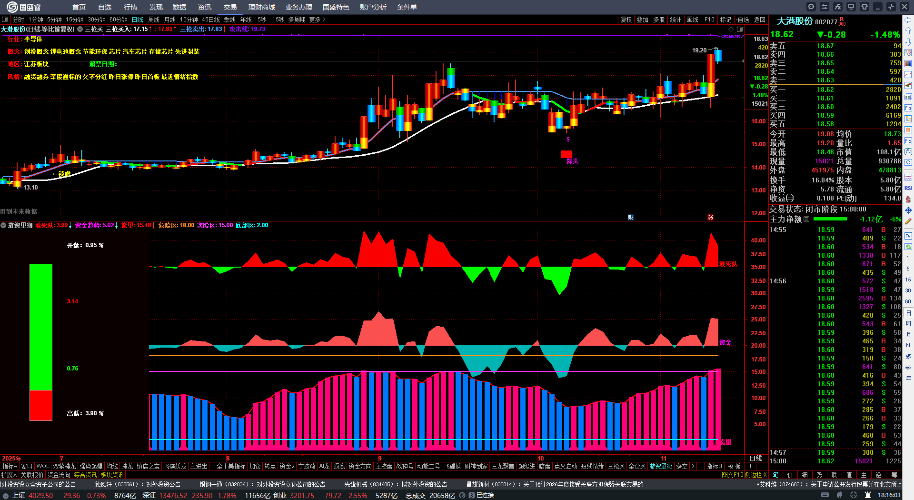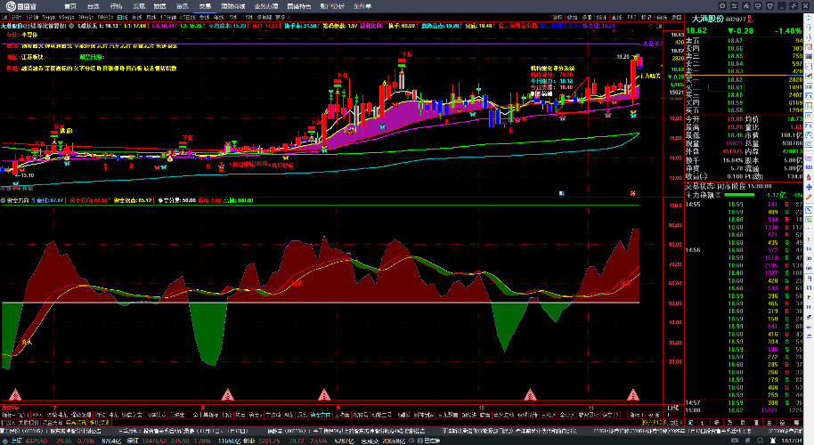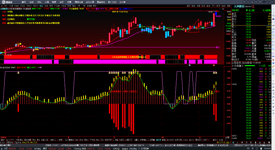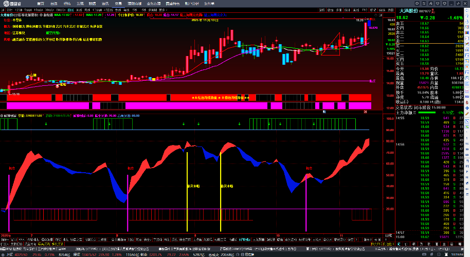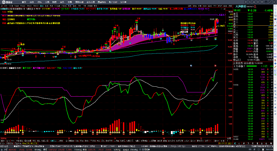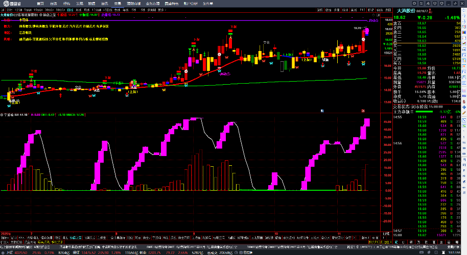 $大港股份(SZ002077)$今天晚上闲来无事,咋也来扮演一次专家,针对今天大港股份的走势做一个解析,今日高开低走,盘中几次向上拉然后回落横盘整理这是典型的对敲打控盘行为,如果你这个时候感觉主力是在出货你也离场了,那就太可惜了,今天这跟阴线是主力故意打出来的,如果今天要出货就不会控盘,收盘就会是一根光头光脑的阴线,那么次日还会往下砸,资金是不会仁慈的,控盘是想把大部分散户能赶下去的都赶下去,横盘...
