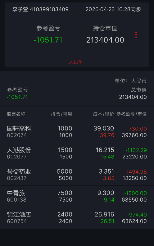 4.23子萱复盘 国轩高科 大港股份 誉衡药业 中青旅 锦江酒店
