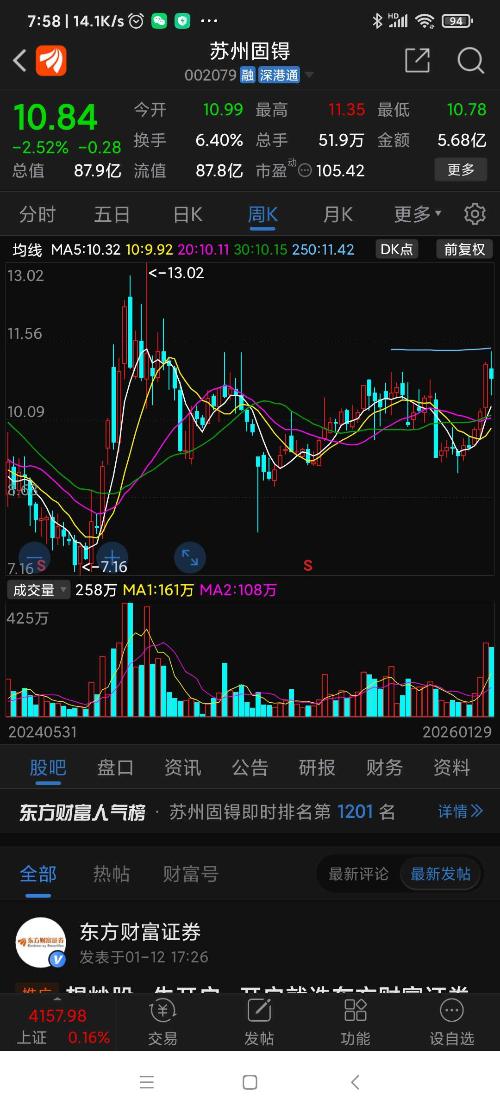 $苏州固锝(SZ002079)$虽然希望渺茫,但是明天如果能暴力拉升11.45以上,那就是完美的周、月收官,走势非常漂亮。愿望是美好的……万一实现了呢。买卖自由,自身不具备荐股分析能力。仅仅是小散的一点点美好愿景而已。