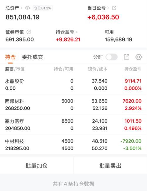 目前资金:851084.19 持仓:中材科技西部材料塞力医疗 买入:西部材料塞力医疗 卖出:永鼎股份 $永鼎股份(SH600105)$ $西部材料(SZ002149)$ $中材科技(SZ002080)$#社区牛人计划# 实盘记录,希望各位股友支持海哥,看到的朋友点个赞,扣一波“168”支持一下,我会每天坚持发出自己的操作来! 特别声明:我开实盘的目的主...