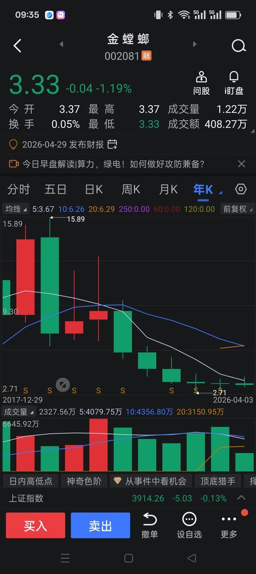 金螳螂股票价格,季K线是进场洼地,此地无很三百两。相信金螳螂年K线一定不会6连阴!