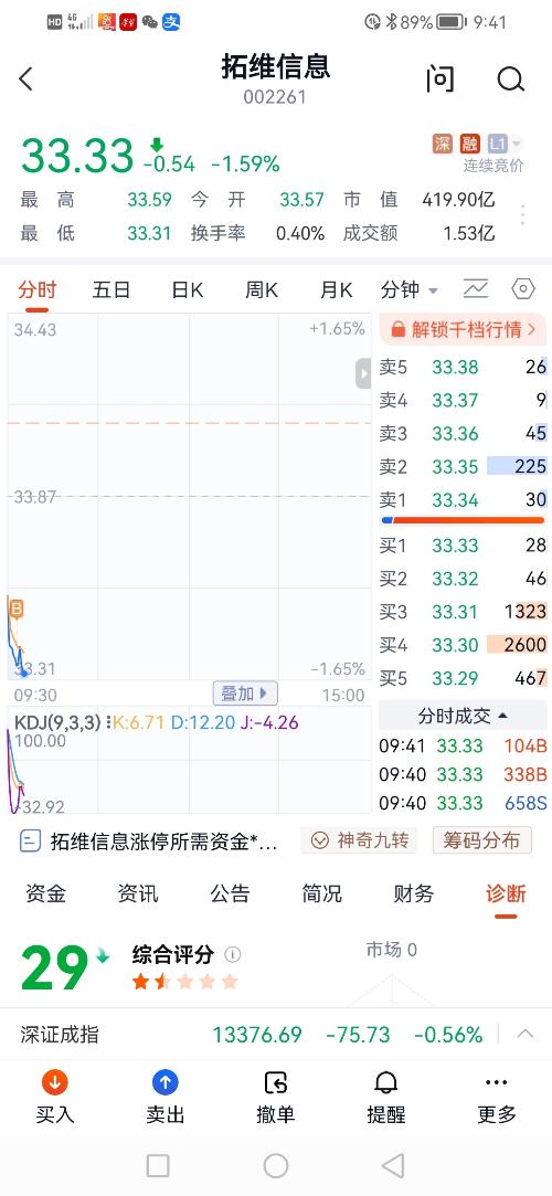 昨天在33.67和33.8抛出4.5成仓拓拓,今天在33.37左右全仓买入。