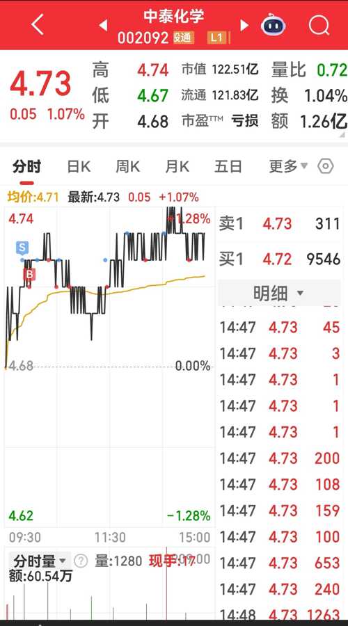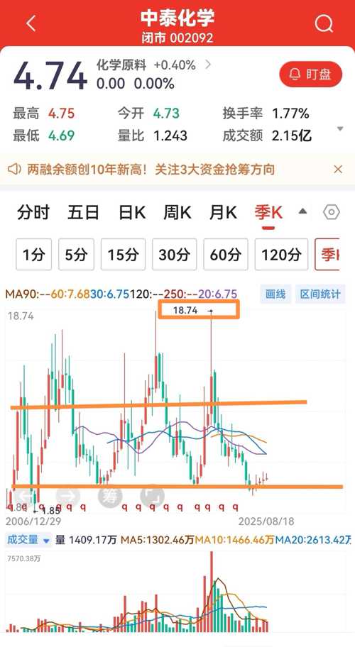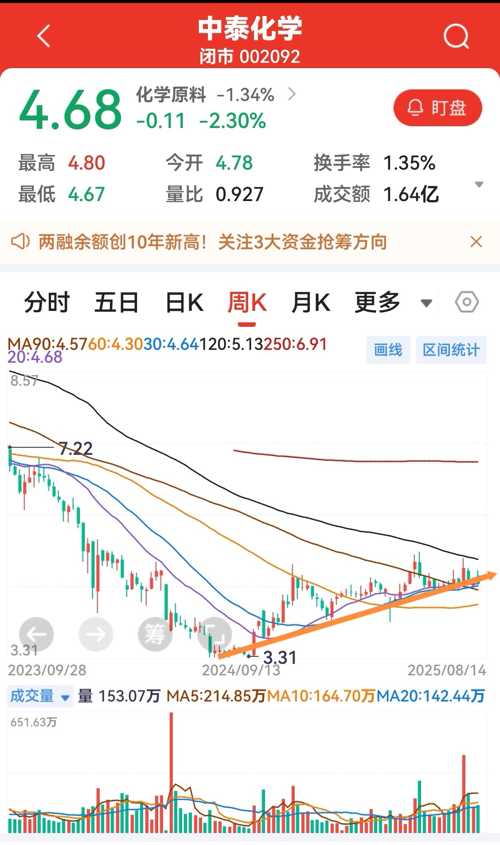 $中泰化学(SZ002092)$4.63五十周支撑,年线向上