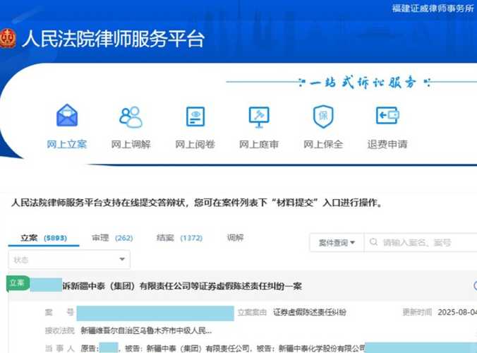 中泰化学虚假陈述案最新动态,已进入庭审阶段,您的权益受法律保护,索赔时段: 2021年1月1日至2024年3月19日之间买入002092中泰化学,且在2024年3月20日(含当日)之后卖出或继续持有者。以上索赔登记条件仅代表证威律所观点。不作为任何证券投资决策和买卖建议,最终以法院的认定结果为准。了解更多可网查证威律所或看企业信息