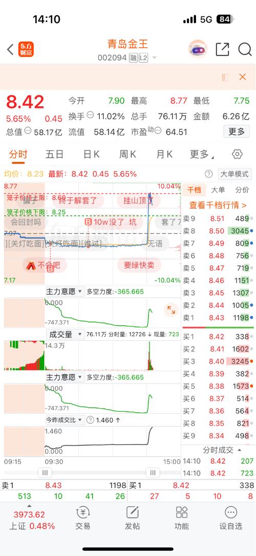 $青岛金王(SZ002094)$最低7.76加仓了,主力你随意砸吧