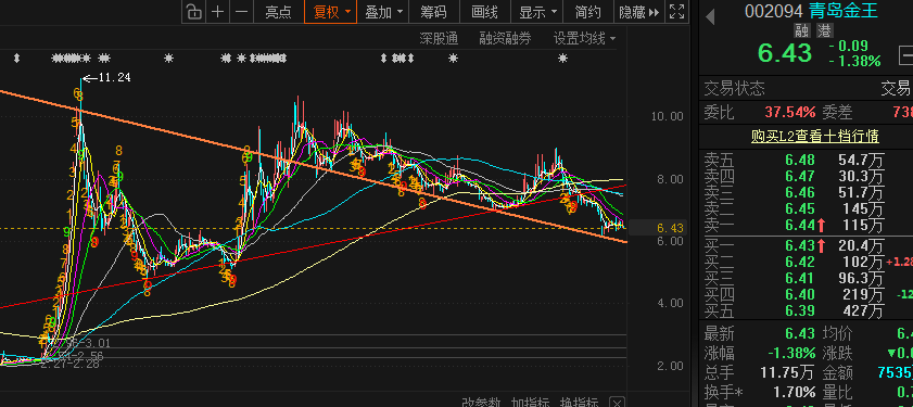 $青岛金王(SZ002094)$天天跌呀