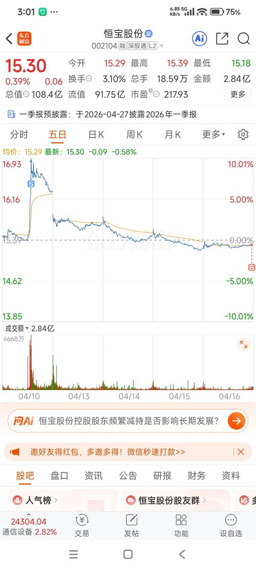 $恒宝股份(SZ002104)$今日收盘价15.28