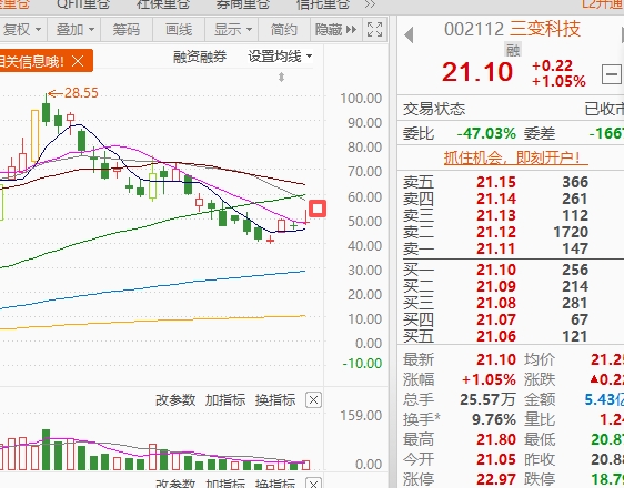$三变科技(SZ002112)$周一有3个点涨幅,日线即将迎来金叉