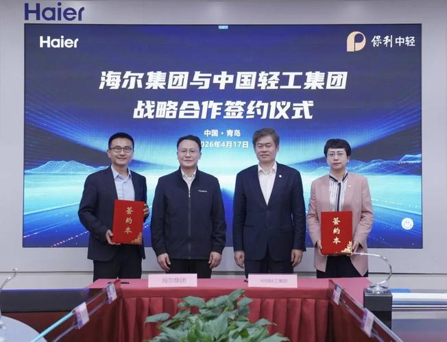 4月17日,中国轻工集团有限公司(简称“中轻集团”)与海尔集团公司(简称“海尔集团”)在青岛签署战略合作协议。中轻集团党委副书记、总经理,中国海诚董事长赵国昂与海尔集团董事局副主席、总裁梁海山共同见证并会谈。中轻集团副总经理孙波与海尔集团副总裁、首席技术官王晔代表双方完成签约。 赵国昂对海尔集团全球领先的综合实力、物联网生态品牌地位及全球化运营优势给予高度评价。他指出,中轻集团及所属中国国海诚与海...