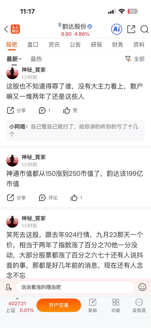 神通市值都从150涨到250市值了,韵达该199亿市值