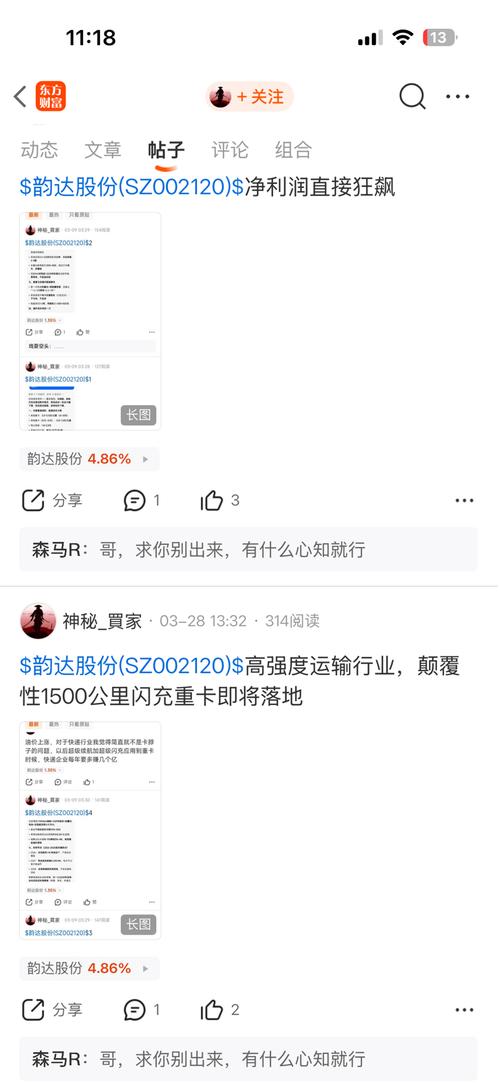 $韵达股份(SZ002120)$说了你叫了你别出来,你是机器人吗,只能拉黑当看不见了,应该就好转