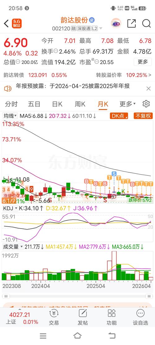 $韵达股份(SZ002120)$韵达股份长期单边下挫,不TT利息多填不上。老捏如同老登让我还亏3.8毛每股。7.85元踢到7.28的本本至今为止没有回归