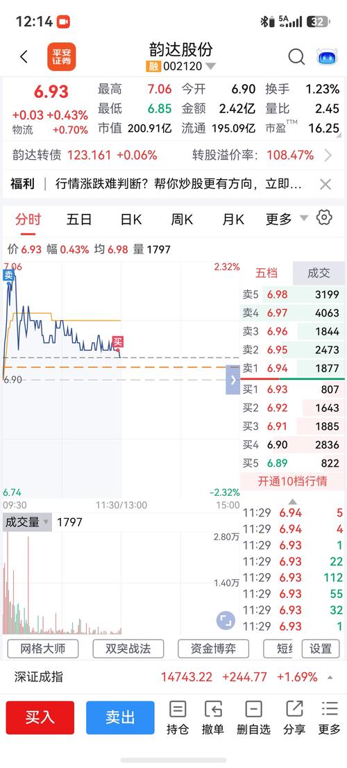 6.6到6.8买的,T一下,这货适合做T。明天申通快递要是顶不住了,这货还得往下,7.04卖,6.94卖。到6.8又开始买