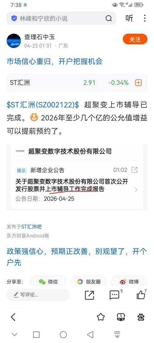 $ST汇洲(SZ002122)$超聚变上市辅导已完成。