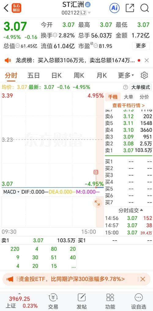 $ST汇洲(SZ002122)$昨天那么大量机构跑的?今天这么牛逼的么