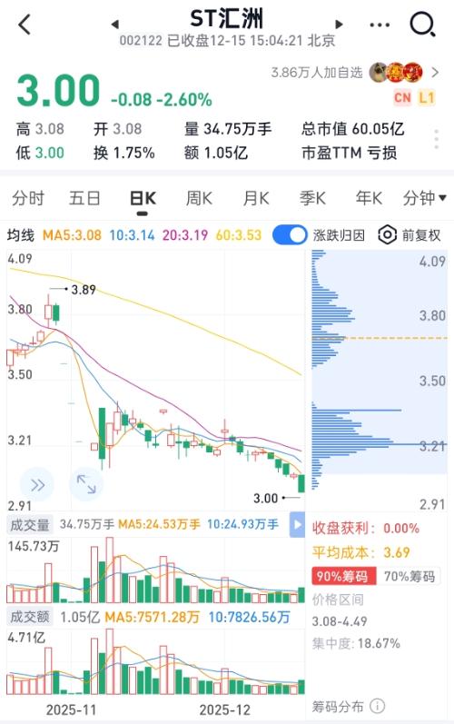 $ST汇洲(SZ002122)$3元钱?3圆钱的汇洲智能。。。
