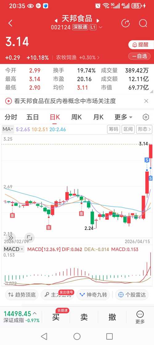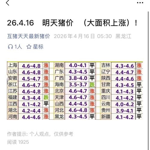 $天邦食品(SZ002124)$4.16号最新全国生猪报价#强势机会#涨涨涨