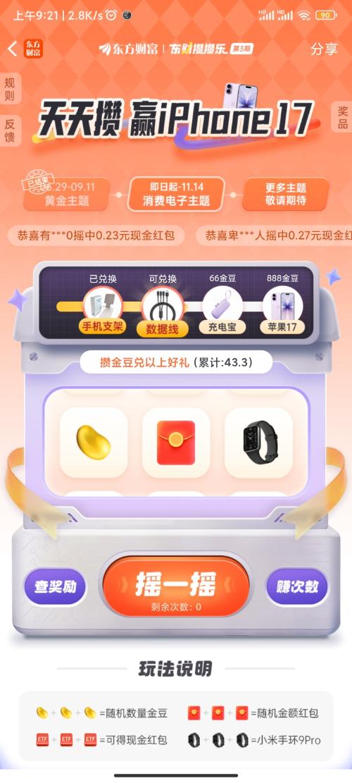 #【东财攒攒乐】天天攒,月月兑!#一次活动怎么做也没有充电宝啊最多少做4天而已