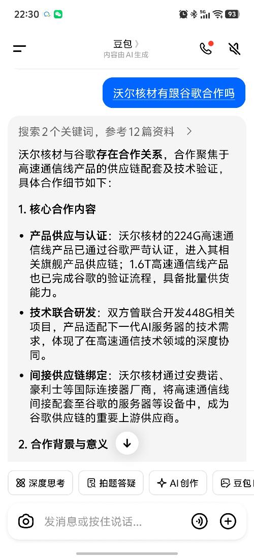查了一晚上,我的观点是可以拿。你NVL144无缆链接,全光互联,行,问题是谁用的起这么多啊?铜互联不比光模块便宜?第二个,就算都用了,你柜间互联呢,肯定还得用铜吧,第三个,你数据中心要不要电,电缆电源组件,就算你铜缆不买沃尔的,那热缩材料呢,电源外面的保护套,我沃尔市占率全球第二,今年又干了二十台发泡机,迟早把市占率给你打上去