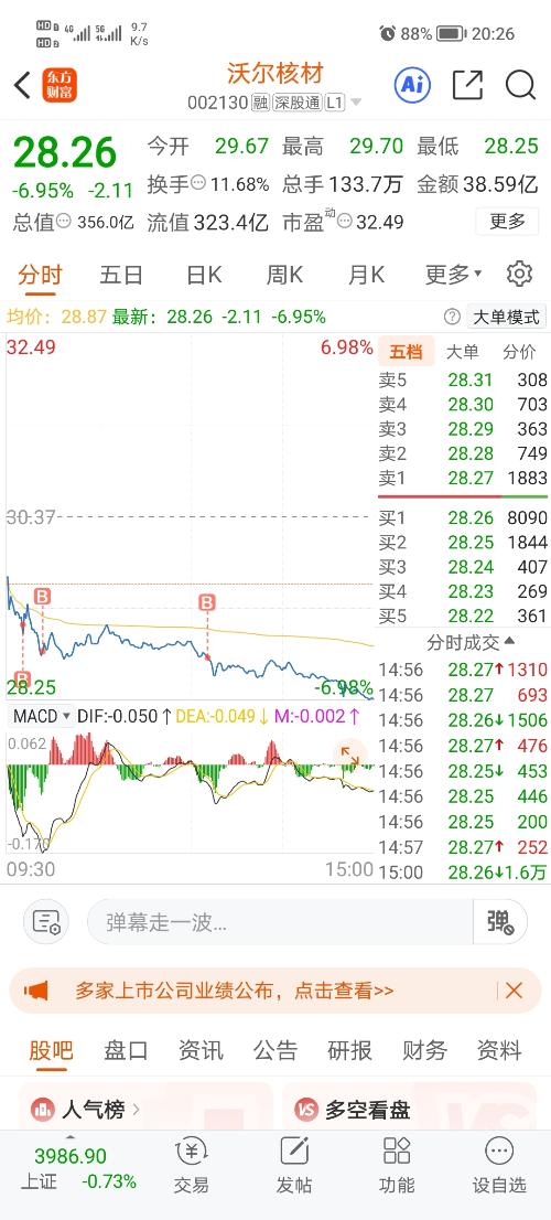 $沃尔核材(SZ002130)$现在好股票都涨得很高了,不敢追,只能买买沃尔这样子的,被套了就被套了,炒股票本来就有赢有亏,风风雨雨。格局到100,猴年马月都等它。