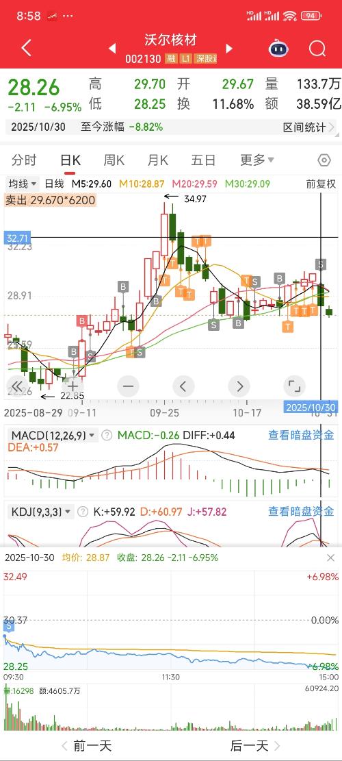 $沃尔核材(SZ002130)$散户的对手盘是机构大资金,上次发贴说27.50-27.00是吸货区,涨上30.51,这次再回27区间,比上次吸货力度更大,3497不是顶! 我也只搞了10多个点,换股了,还是回来对散户同行的讲一声!