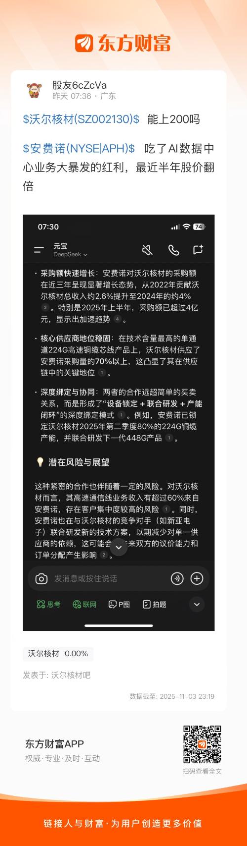$沃尔核材(SZ002130)$大家理智一点,看看立讯精密的最新投资者记录,里面对铜缆高速连接和对gtc的无揽方案做了解释,以及未来业绩ai是主要引擎的说明。