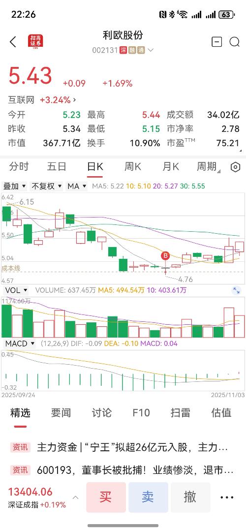 整体是一个超跌反弹走势,没有大行情。但是因为放量,所以这里有惯性上涨,预期可能会有两三天的阳线。 想做小套利,可以留意今天负五位置低吸机会。明天拉升走人,千万不要红盘去追。$利欧股份(SZ002131)$