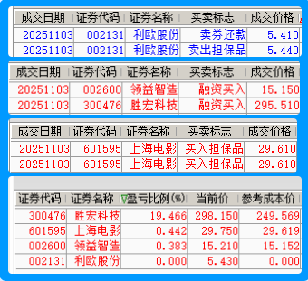 11.03操作胜宏科技、领益智造、上海电影和利欧股份情况